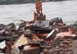 बारिश के कहर से धराशायी हो गया मंदिर, पर खड़ी रही हनुमान की प्रतिमा, लोगों ने माना इसे चमत्कार