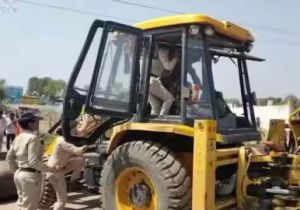 दमोह में दुष्कर्म के आरोपी के घर महिला पुलिसकर्मियों ने चलाया बुलडोडर