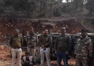 जंगली पत्थर से भरे ट्रैक्टर को वन विभाग की टीम ने पकड़ा
