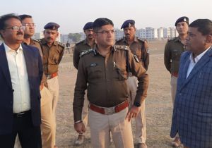 कलेक्टर और पुलिस अधीक्षक ने एसएएफ मैदान में चल रहे निर्माण कार्यों का किया निरीक्षण