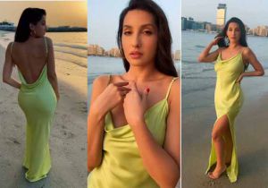 बैकलेस मैक्सी पहन समंदर किनारे टहलती दिखीं नोरा फतेही