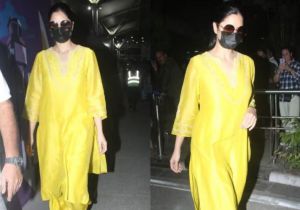 प्रेग्नेंसी की खबरों के बीच पीले सूट के बाद व्हाइट कलर के ढीले कुर्ते में दिखीं कैटरीना कैफ