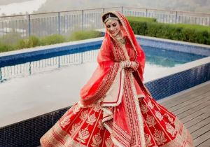 रेड लहंगा चोली में मौनी रॉय ने मचाया
