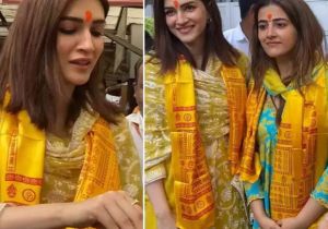 राष्ट्रीय फिल्म पुरस्कारों जीतने के बाद परिवार संग बप्पा के दर्शन को पहुंचीं कृति सेनन