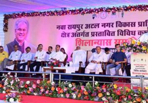 मुख्यमंत्री ने नवा रायपुर में कमर्शियल हब, एरोसिटी और शहीद स्मारक की रखी आधारशिला