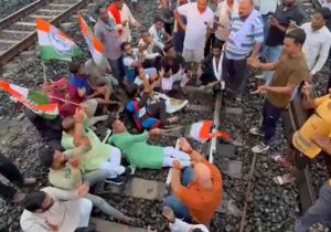 कांग्रेस का छत्तीसगढ़ में रेल रोको आंदोलन, ट्रेनों के कैंसिलेशन और लेट-लतीफी से नाराजगी