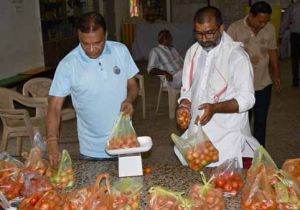 आधी कीमत पर टमाटर लेने उमड़ी भीड़,लायंस क्लब की अनूठी पहल
