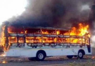 यात्री बस में अचानक लगी आग, यात्रियों ने कूदकर बचाई जान