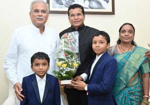 मुख्यमंत्री से नवनियुक्त मंत्री मोहन मरकाम ने सपरिवार की सौजन्य मुलाकात