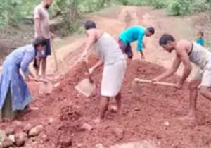ग्राम पंचायत ने हांथ खड़े किये, ग्रामीणों ने अर्थ-श्रमदान से सड़क मरम्मत का लिया निर्णय