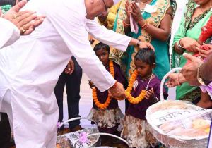 मुख्यमंत्री ने जुड़वा बहनों को भेंट किया सुपोषण किट