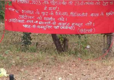 नक्सलियों ने ब्लूटूथ साउंड सिस्टम के साथ लगाया बैनर