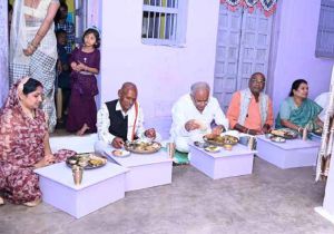 मुख्यमंत्री ने जायसवाल परिवार के घर लिया छत्तीसगढ़ी भोजन का स्वाद
