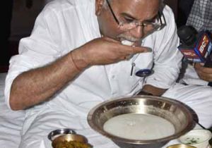 मुख्यमंत्री ने बोरियाखुर्द के मोहन साहू के घर लिया स्वादिष्ट छत्तीसगढ़ी भोजन का स्वाद