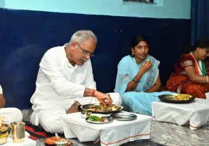 मुख्यमंत्री ने आंगनबाडी सहायिका कौशल्या के घर मुनगा-बड़ी, लाल भाजी, बोहार भाजी और खट्टा भिंडी का लिया आनंद