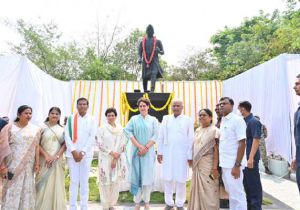 मुख्यमंत्री और प्रियंका गांधी ने पं. नेहरू की मूर्ति पर श्रद्धा सुमन अर्पित किए