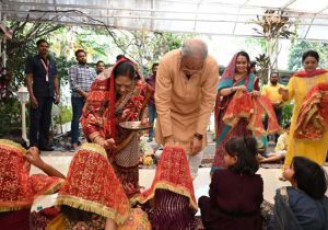 मुख्यमंत्री बघेल और धर्मपत्नी मुक्तेश्वरी ने किया कन्या पूजन