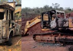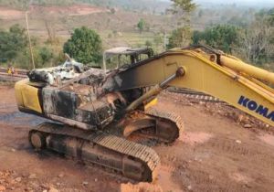 नक्सलियों ने रेललाइन दोहरीकरण में लगी मशीनों व एक ट्रक में की अगजनी