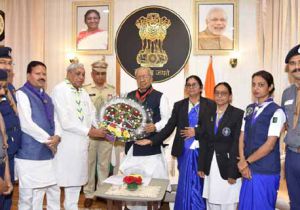 राज्यपाल को भारत स्काउट्स एवं गाईड ने स्कार्फ पहना कर सम्मानित किया