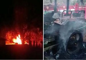कांकेर में नक्सलियों का उत्पात,सड़क निर्माण में लगे 12 वाहनों में लगाई आग