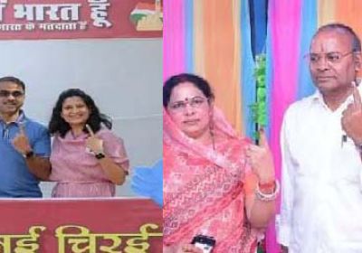 भाजपा प्रत्याशी अजय चंद्राकर व जनसंपर्क आयुक्त दीपांशु काबरा परिवार के साथ किया मतदान