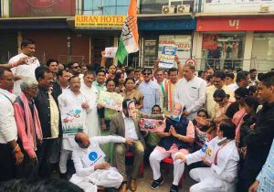 मोदी सरकार की अडानी परस्त नीति के खिलाफ कांग्रेसियों ने किया एसबीआई मुख्य शाखा के सामने प्रदर्शन