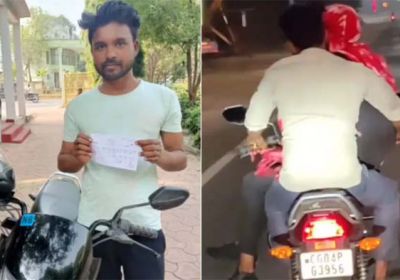प्रेमी जोड़े के चलती बाइक पर रोमांस पर पुलिस का डंडा