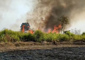 गन्ने के खेत में लगी भीषण आग, 14 किसानों के 40 एकड़ की फसल जलकर राख