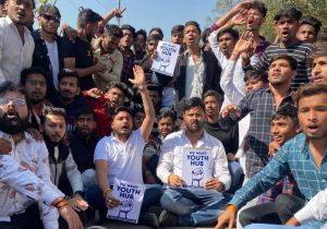 चौपाटी के समर्थन में एनएसयूआई कार्यकर्ता उतरे, धरना वालों के साथ झड़प