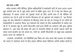 7 Jan, 2023 11:48 AM IST | ASIAVARTANEWS.COMजगदलपुर भाजपा विधि प्रकोष्ठ के बस्तर जिला संयोजक सपन देवांगन ने प्रेस को जारी बयान कहा...