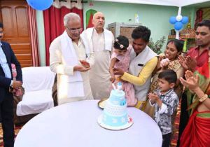 किसान महेंद्र साहू की नन्ही बच्ची का जन्मदिन, मुख्यमंत्री ने परिवार वालो के साथ केक काटकर मनाया
