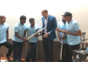 कलेक्टर ने दिव्यांग खिलाडियों को दो सेट कम्पलीट क्रिकेट सामग्री कीट प्रदाय किया