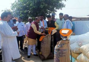 अपने हाथों से धान तौलकर विधायक एवं कलेक्टर ने धान खरीदी कार्य का किया शुभारंभ