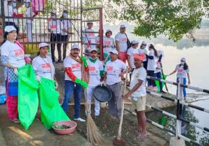 नेहरू युवा केंद्र के स्वयंसेवकों ने किया खारून नदी की सफाई