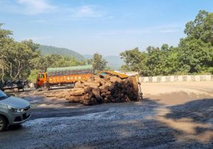 केशकाल घाट के आठवें मोड पर पलटी ट्रक