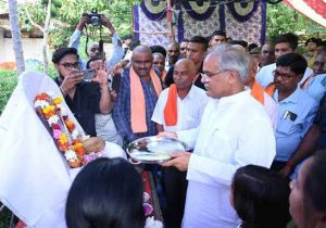 मुख्यमंत्री भूपेश बघेल पहुंचे ग्राम सांतरा, दाऊ ठाकुर राम चंद्राकर को अर्पित की श्रद्धांजलि