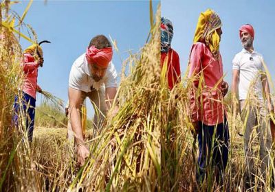 सिर पर गमछा और हाथ में हसिया लेकर खेत में पहुंचे राहुल गांधी