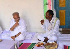 मुख्यमंत्री ने बाबूलाल माली के घर पहुंचकर किया पारम्परिक छत्तीसगढ़िया भोजन