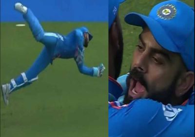 भारतीय विकेटकीपर बल्लेबाज केएल राहुल ने मैच में गजब की फुर्ती दिखाई, हवा में झपटा कैच, कोहली ने मनाया जश्न