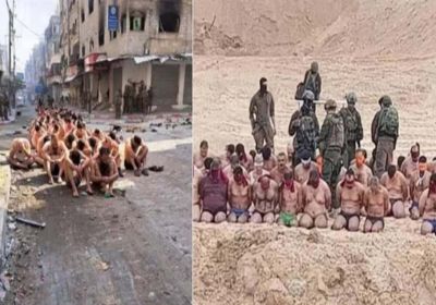गाजा से कुछ नई तस्वीरें सामने आई हैं जिनमें कई फिलिस्तीनी घुटनों के बल नंगी परेड करते दिख रहे: इजरायल का दावा