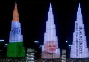 भारतीय प्रधानमंत्री मोदी की यूएई यात्रा पर भारत के रंग में रंगा बुर्ज खलीफा