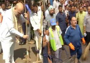 श्रमदान अभियान: BJP नेताओं ने बढ़-चढ़कर लिया हिस्सा, अहमदाबाद में शाह और दिल्ली में नड्डा ने लगाई झाडू