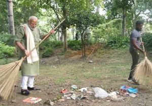 प्रधानमंत्री मोदी ने भी उठाया झाड़ू, पार्क में किया श्रमदान