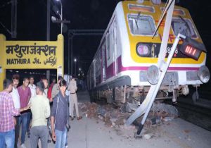 ट्रैक छोड़ मथुरा में प्लेटफॉर्म पर चढ़ी दिल्ली से आने वाली ट्रेन, बिजली के पोल तोड़ती हुई घुसी