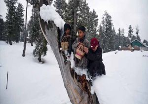 कश्मीर के ऊपरी इलाकों में बर्फबारी