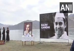 लद्दाख में पैंगोंग झील के किनारे लगी राजीव गांधी की तस्वीरें, श्रद्धांजलि देंगे राहुल