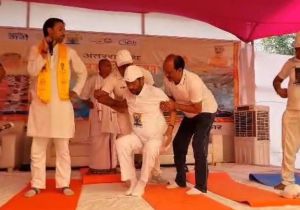 हाजीपुर में योग के दौरान केंद्रीय मंत्री की तबीयत बिगड़ी, मंच पर अचानक गिर पड़े पशुपति पारस