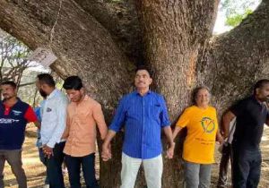 पुणे में पेड़ों की कटाई के विरोध में पर्यावरण कार्यकर्ताओं ने ‘चिपको’ आंदोलन किया