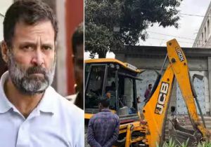 राहुल गांधी की संसद सदस्यता छिनने के बाद कांग्रेस मुख्यालय पर पहुंचा बुलडोजर