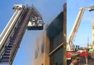 गारमेंट्स फैक्ट्री में लगी भीषण आग, क्रेन से 10 लोगों का किया गया रेस्क्यू